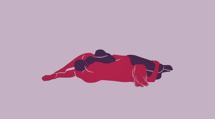 Nesta posição, em que tanto o homem, como a mulher fiquem deitados de lado, onde pode ocorrer tanto uma penetração vaginal, como anal.